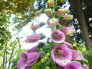 Pretty, magical, deadly.  Foxgloves remind me of Tinkerbell and her friends, dwelling on the edge of deep forests these flowers speak of mystery; but they also remind me of my mother.  And as it is almost Mother’s Day, it seemed appropriate to feature a flower found in her forest garden.  As a child I remember my mother telling me that digitalis was not to be put in the mouth like a honeysuckle or other pleasant blooms, for inside the lovely shaped flower was strong medicine related to the heart.