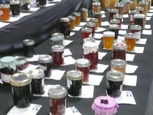 The craft hall is also home to an impressive display of quilts made by local quilters. Odd and wonderful things can happen at the fair. I was lucky enough to catch a demonstration of spinning wool into yarn by an impressive group of at least eight local spinners. In addition there were many farm goods and foods on display, demonstrating the bounty of our region.