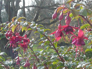 Fuchsia’s delicate blooms inspire thoughts of tiny ballet dancers. One can imagine that over time as they unfurl in stages, they emerge from a tight cocoon, to a dancer in full spin with delicate feet and legs handing down over a gown with arms outstretched. (Their multicolored layers also resemble the layers of a ball gown.)