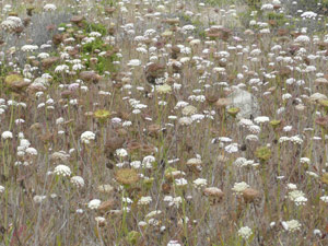 Although attractive looking, the scent is not particularly sweet-smelling to humans. These flowers, blooming in Northern California in summer through winter, have two things in common with snowflakes: no two are exactly alike, and they bob gracefully in a breeze, bringing an airy sense to the dry landscape of Autumn.