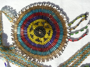 For Rachelle, beading is a very personal process. She is inspired not only by her environment but by the people for whom she makes jewelry (often by commission). “Everything inspires me: a bead, clothing, making something for someone after talking to them and getting a sense of their personality…using a broken earring to make a necklace…color.” In addition to creating pieces to coordinate with individual’s outfits, she also does restoration work on beaded dresses.