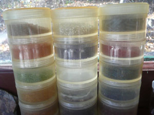 I fondly remember my aunt, Shirley Weisman, beading in the sun-room, surrounded by stacks of colored beads glowing in the sunlight. Her style is intricate and careful; each color, each shape measured. She laughs as she remembers me making a chart where I carefully diagrammed my first pattern for a necklace, knowing that I now work in much bolder strokes. She is patient and exacting, creating sample patterns and then stringing, removing, and stringing until she has it just right.