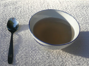 We are trying something new: a meal inspired by a theme, rather than a single food item. This meal was designed as a palette-cleanser for the whole year. We are beginning with the idea of simple flavors, which includes One-Flavor Soup, followed by a two-flavor meal, with a starchy soul food of your choice. (Our family chose pierogi stuffed with potato and cheese, and stuffed with sauerkraut. But your family might prefer schnitzel or dumplings, or what have you.) This is completed with Three-Flavor Tea, served with biscotti. The whole meal should leave you feeling happy, but not overstuffed.
