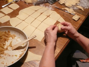 Sometimes the only thing better than eating these tasty delights is the warm feeling of making them around the table with the family you love. This dish is a labor of love, and seriously hard work, but it connects us with a sense of the past and is a very satisfying flavor to those who have grown up loving it.