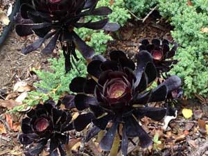 In addition to various hues of green and grayish blue, and the occasional pop of red as winter weather approaches, I was surprised to find there are black succulents.