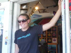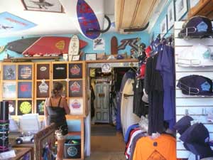 After several years, Nick and Able departed, and she was still working there when her son was born. When he was two years old she worked there with her son in tow, and he chewed on the surf wax. “Smells good, why not?” She began buying the clothes for the shop. She mentioned to Able that if he ever wanted to sell she would buy it. So she and her boyfriend, Ben, bought it after 12 years of managing it. “It’s a pretty sweet gig…hang out talk about all kinds of stuff, people bring you beer…Waves from everyone going by.”